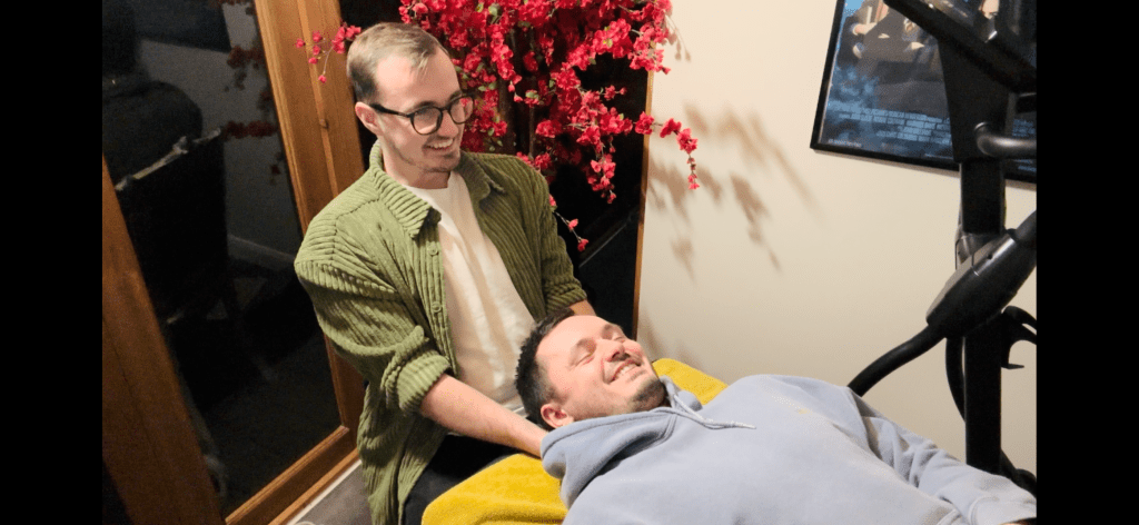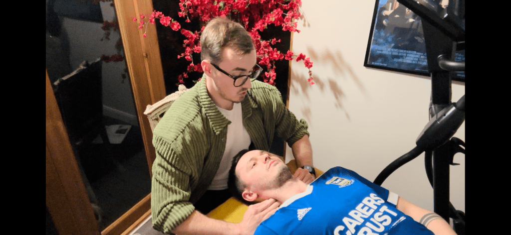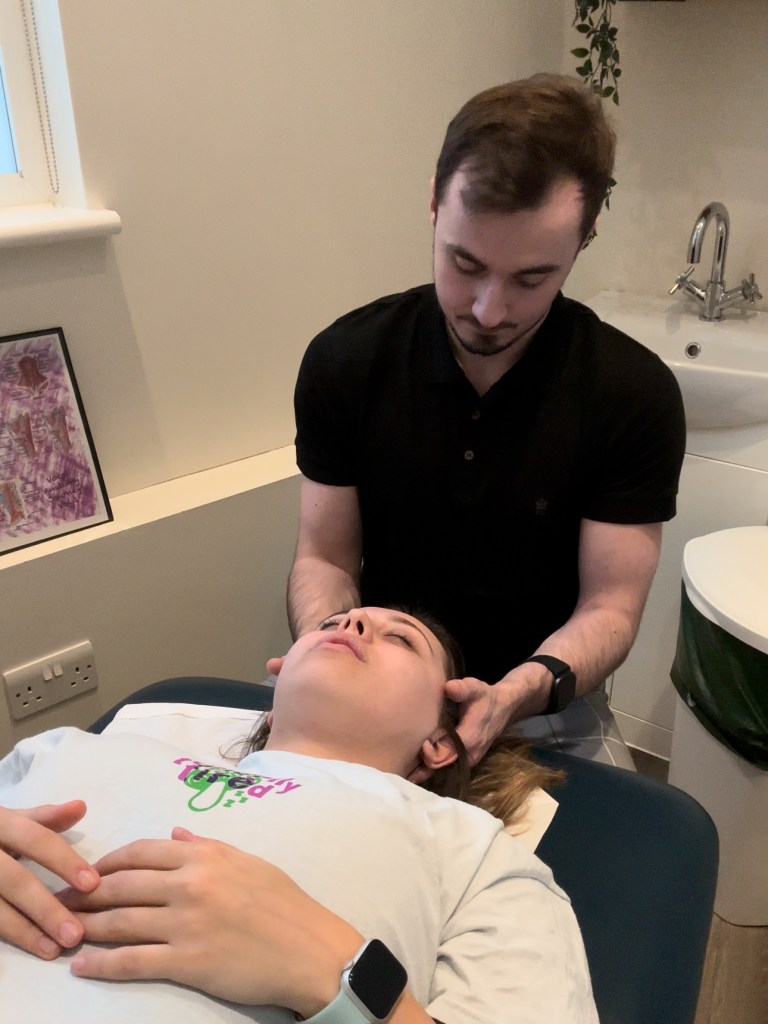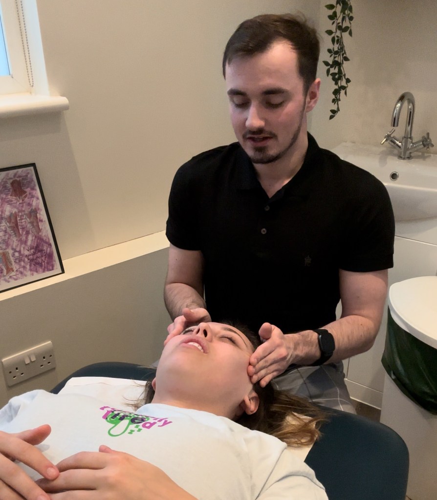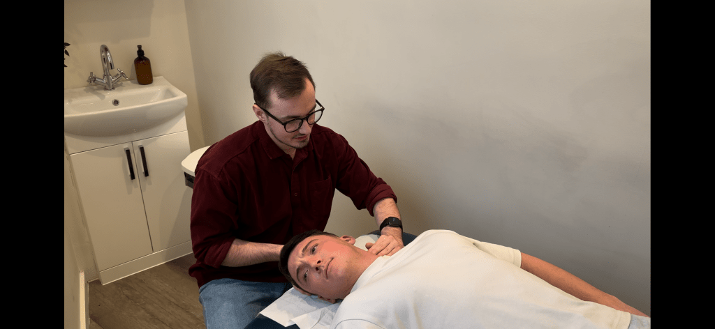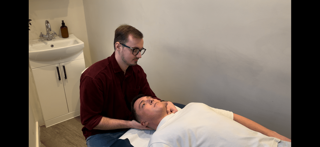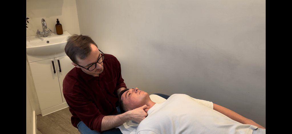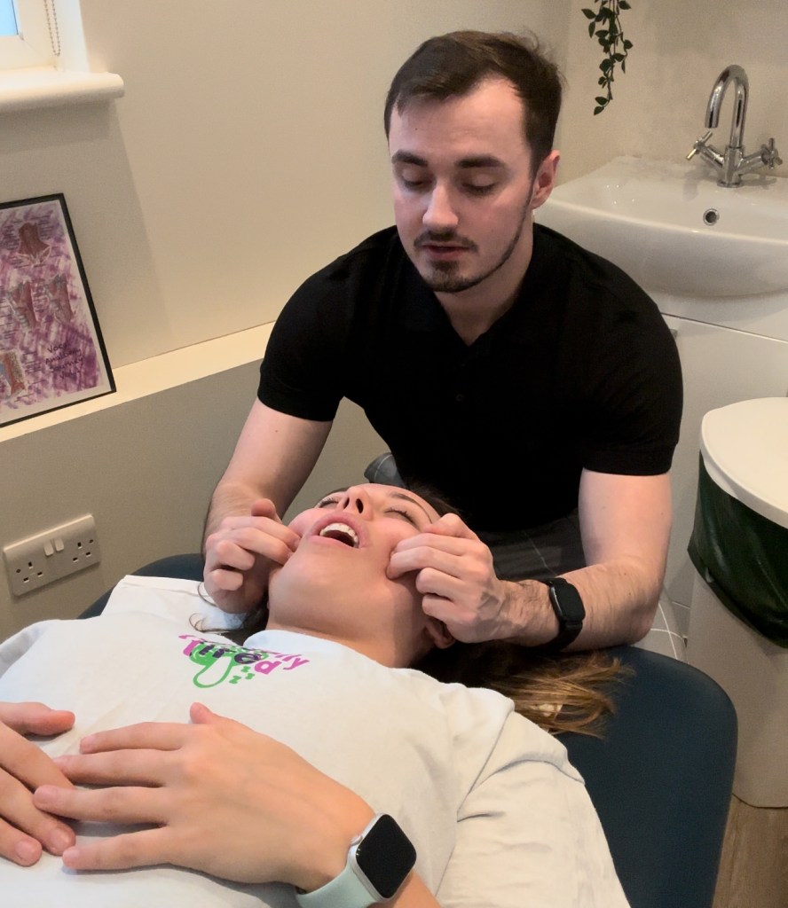 The ‘Candy Cane’‘Transverse Processes of the Cervical Spine’Explanation of ‘Prayer Hands’‘Cross Fibre Friction of the Temporalis’The ‘Basketball Stretch’‘Trigger pointing the SCM’‘Transverse processes of the Cervical Spine’Preparation of ‘Transverse Processes of the Cervical Spine’